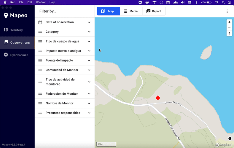 - Mapeo Desktop : Users are notified when the export of observations is finished.